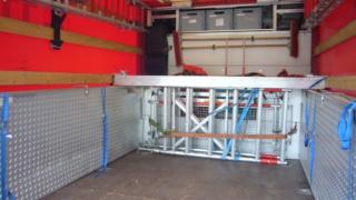 Des Weiteren dient das Fahrzeug als Zugfahrzeug für die AL 18. Weitere Materialien oder Ausrüstungsgegenstände werden je nach Bedarf in Boxen mittels der Ladebordwand auf die Ladefläche geladen.